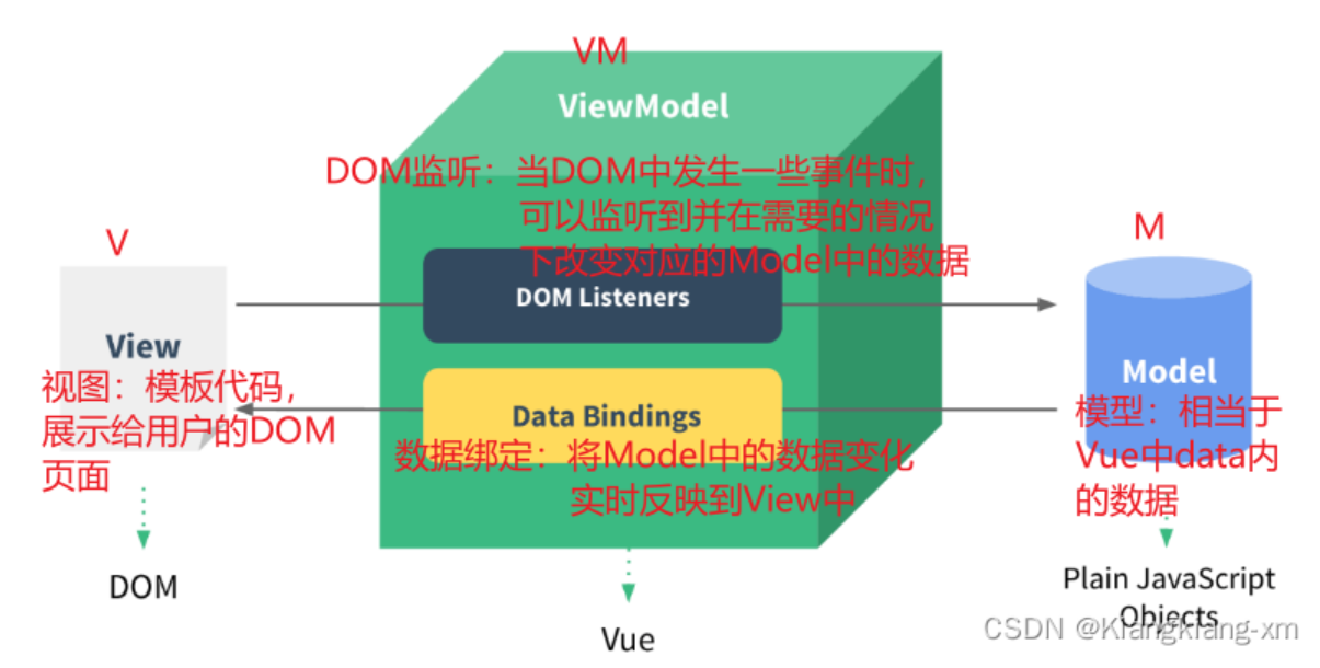 - VM:视图模型 ViewModel —->也就是 Vue 实例(vm)
