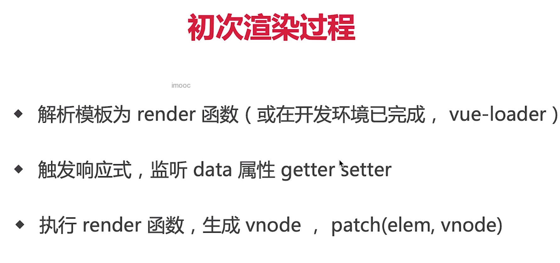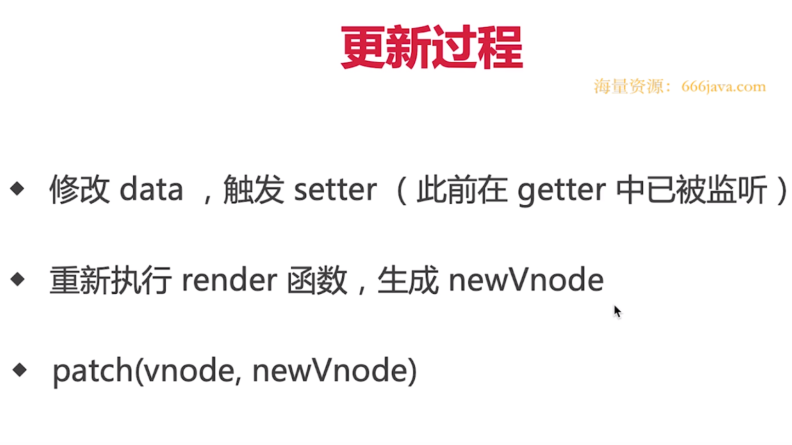 增量更新: 新旧 vnode 对比,得出最小的更新范围,最后更新 DOM