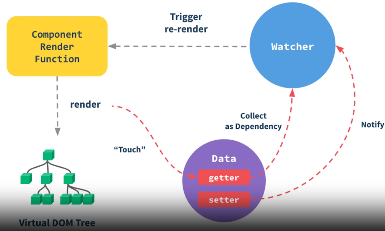 首先我们需要通过 Object.defineProperty()方法把数据(data)设置为 getter 和 setter 的访问形式,这样我们就可以在数据被修改时在 setter 方法设置监视修改页面信息,也就是说每当数据被修改,就会触发对应的 set 方法,然后我们可以在 set 方法中去调用操作 dom 的方法。